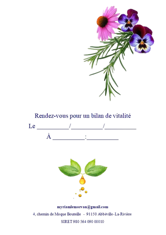 Le site « myriamlemorvan-naturopathe.com » ne propose que des conseils généraux d’hygiène de vie, de prévention et de techniques naturelles de soutien et non de substitution à tout autre traitement prescrit par un professionnel de santé.